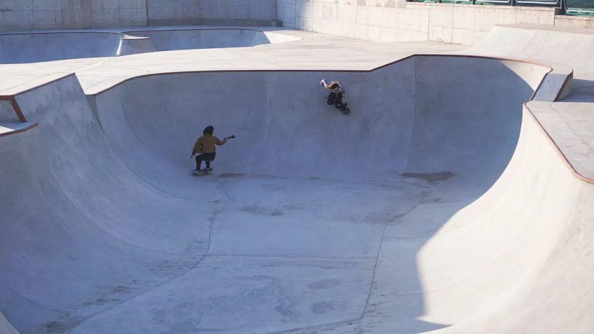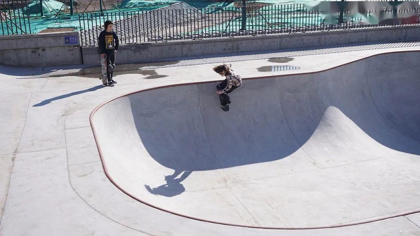 遠(yuǎn)處的碗池深度均勻,但是邊緣向內(nèi)延伸形成了一個(gè)Spine(梁)以及一個(gè)圓臺(tái),想在這個(gè)場(chǎng)地內(nèi)發(fā)揮可沒(méi)有那么容易。